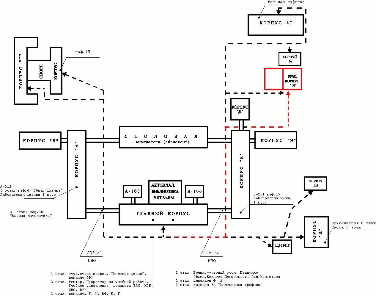 Взяв в руки план местности, прилагаемый к учебному плану прошлого семестра, без труда можно найти дорогу к искомому корпусу... Для увеличения схемы кликните по фото На схеме все, что относится к теме, отмечено красным (корпус и направление)