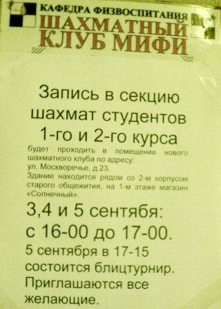 ...Надоело смотреть на этих халявщиков-шахматистов? Не надо смотреть, надо присоединяться))) Оригинал объявления, вывешенного на первом этаже: